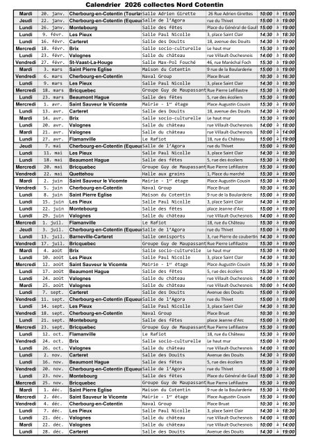 Ce calendrier n’est pas définitif et peut être évolutif.